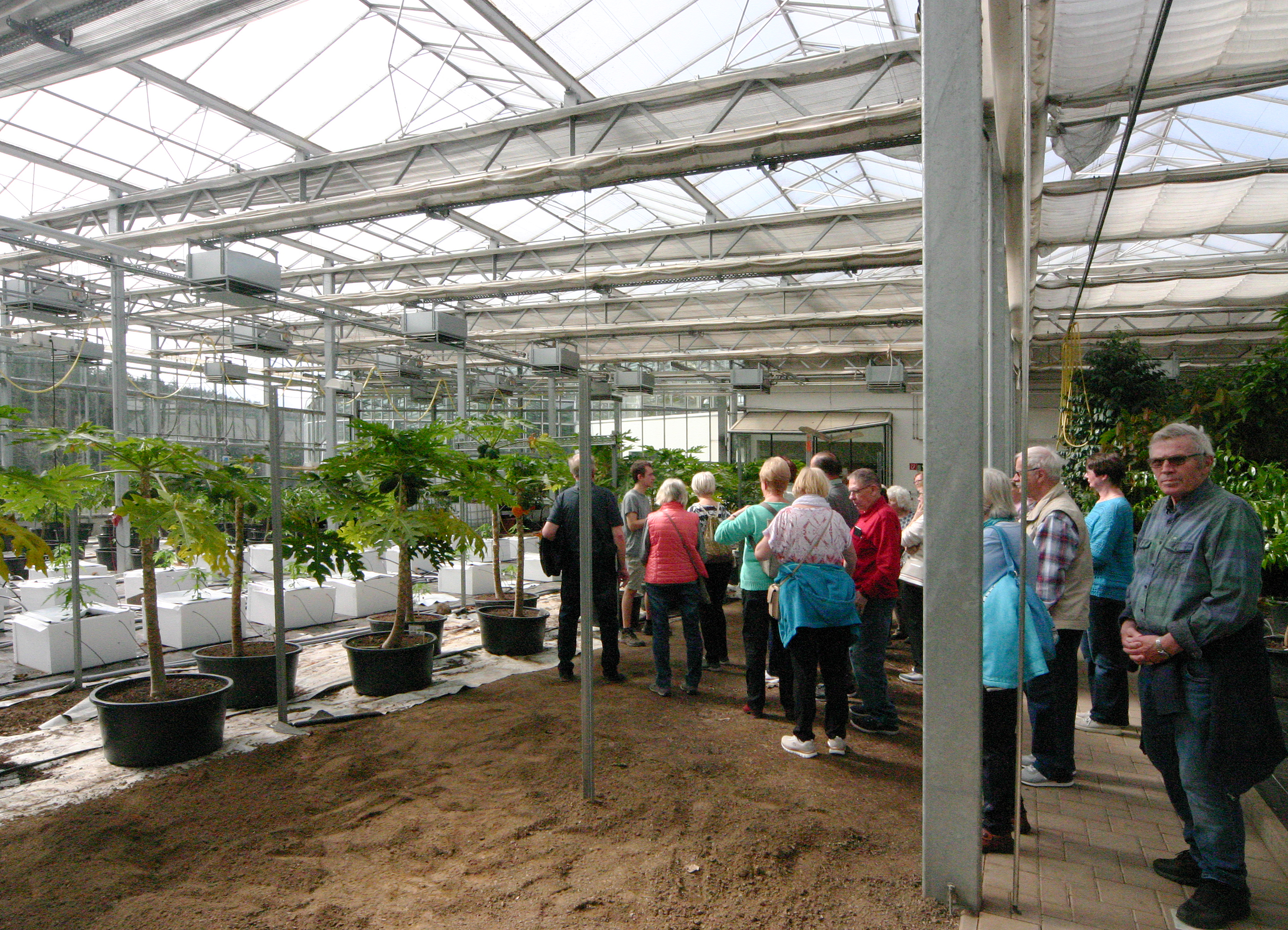 Besonderes Interesse weckte die Südfrucht-Gewächshausanlage 'Klein-Eden' der Universität Bayreuth, das eine Fahrtstunde entfern war. Tropenfrüchte wie Passionsfrucht, Guave, Mango und Schwarze Sapote werden hier wissenschaftlich untersucht hinsichtlich Nährstoffbedarf und Wachstumsverhalten.