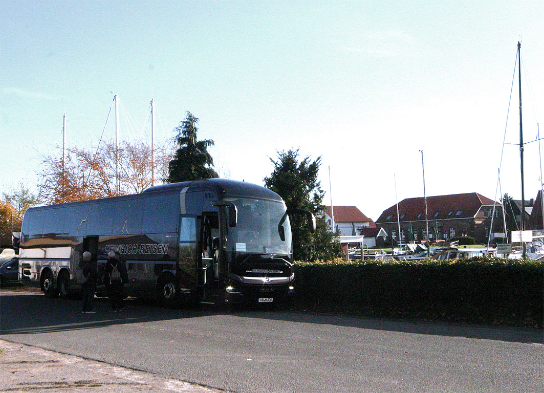 Historisches Kreishaus WittmundSt. Nikolaikirche in Wittmund: Über 200 Jahre alt wurde sie 1776 als barocker Saalbau geweiht. Auf dem Kirchturm ist ein goldener Schwan gesetzt, den dem ostfriesischen Wetter trotzt.Marktansicht Wittmund mit Hotelansicht (re)Gute Küche und herrliche Snacks gab es beim WirtenDie Salatbar ist eröffnet. Alles frisch vom Markt und liebevoll zubereitetEin Käseparadies für GourmetsFrisches Obst und Gemüse kommt nachhauseAn uns ziehen typisch regionale Häuser vorbeiDer Hafen war wichtiger Umschlageplatz für Getreide, Speck und vor allem Käse.Hinein ins Kapitäns Haus des deutschen Sielhafenmuseums Carolinensiel. Das Fundament stammt aus der Gründerzeit (1730-1732). Kennzeichnet ist die fünfachsige, zum Deich gewandte Giebelfassade aus unverputztem Backstein.Sicht aufs Kapitäns HausModelsegelschiff eines DreimastersZu bewundern waren die historischen Fließen an der WandWieder unterwegs mit unserem ReisebusWeserschlösschen Blexen in NordenhamDie Gedanken schweifen lassen in das unendliche BlauHafenansicht und zugang zum offenen MeerErholsame Sicht auf die ruhige Ostsee mit PromenadeHier in Ostfriesland werden die Pflastersteine für Straßen und für Klinker benutztKrabbenkutter im Hafen von GreetsielHafen Tönning liegt malerisch am Fluss Eider, der in die Nordsee mündet. Der Hafen war wichtiger Umschlageplatz für Getreide, Speck und vor allem Käse.Hafen TönningBahlsen Outlet – Leckere Kekse und Schokolade für Schnäppchenpreise. Da lohnt es sich auch mal, mehr einzukaufen.Bahlsen OutletAnsicht auf ein kleines Kälbchen mit wärmender RotlichtlampeVerkostung der hausgemachten Bio-KäsesortenSicherheitsfressgitter für die Wallache in ZweibrückenHier greift man gerne zu, Meeresluft macht hungrigJetzt geht es wieder nachhauseTreffpunkt zur gemeinsamen Heimfahrt